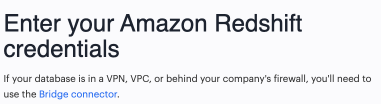 If you’re sure the credentials are correct, these errors can also occur when Bridge is installed on a machine that can’t access your database. Importantly, this error occurs from the perspective of the machine running Bridge, not necessarily from your computer or from Analyst Studio’s servers. Most commonly, this error occurs when your database is accessible only to computers inside a VPN. If you installed Bridge on a computer outside your VPN, or if the computer is not currently logged in to the VPN, Bridge won’t be able to connect to your database.