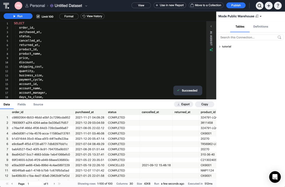 Dataset run succeeds (manual or via a schedule).