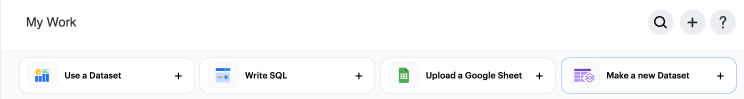 Alternatively, go to My Work on the left nav and click the shortcut tile for Make a reusable Dataset.