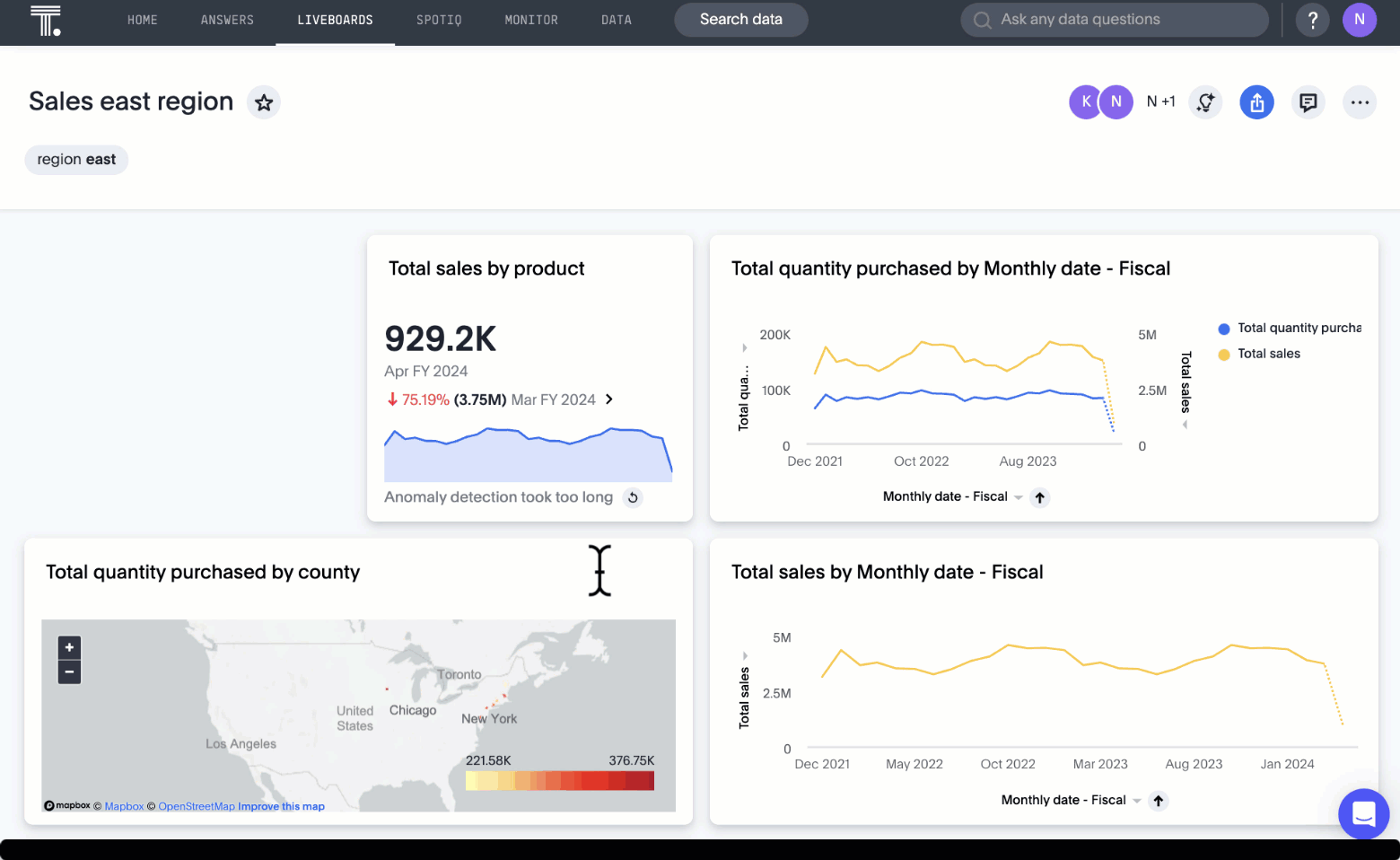 Ask Sage is a conversational experience that allows you to ask simple follow-up questions on visualizations in a Liveboard using natural language. You can effortlessly gain deeper insights on your metrics.