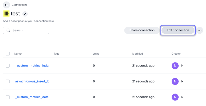 You can now validate connections to discover any changes in metadata after the connection was created. When you validate a connection, ThoughtSpot provides a JSON file containing details on any metadata changes. Once alerted to a metadata change, you can use TML to update the connection.