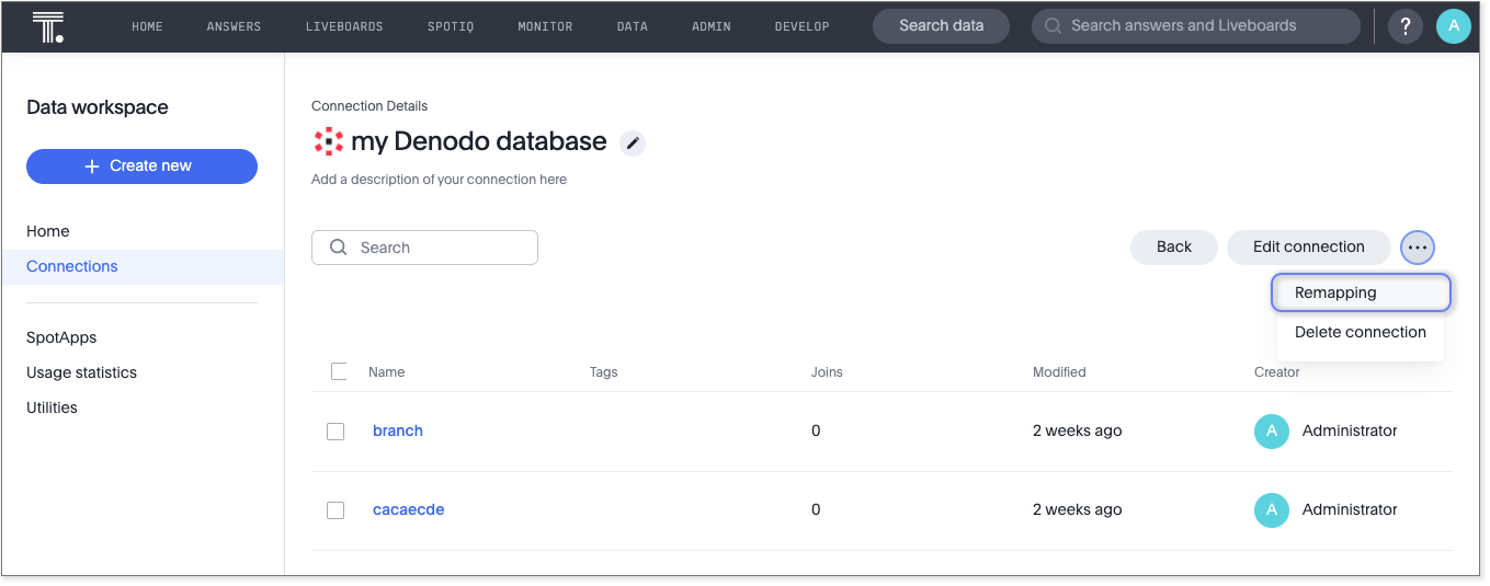 You can modify the parameters of your connection to the Denodo database by changing the source mapping tml file. ThoughtSpot creates this file automatically, to record the details of the new or updated connections.