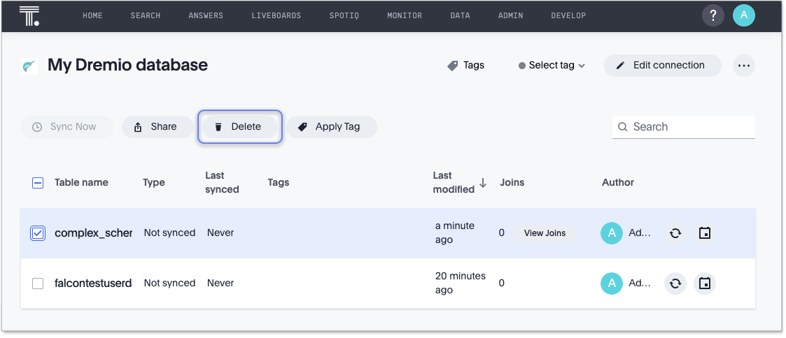 When you attempt to remove a table from a connection, ThoughtSpot checks for dependencies and shows the list of dependent objects. You have two options: