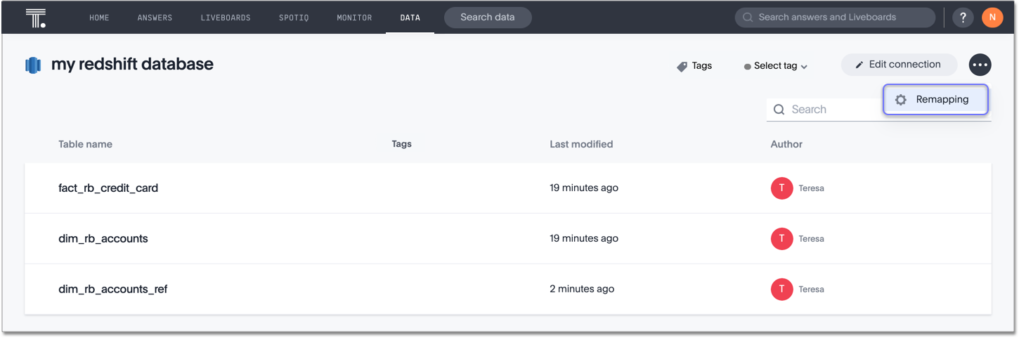 ThoughtSpot recommends that you check the dependencies before and after you remap a table or column in a connection to ensure they display as intended.