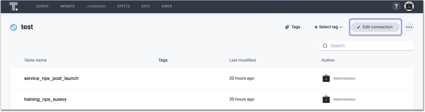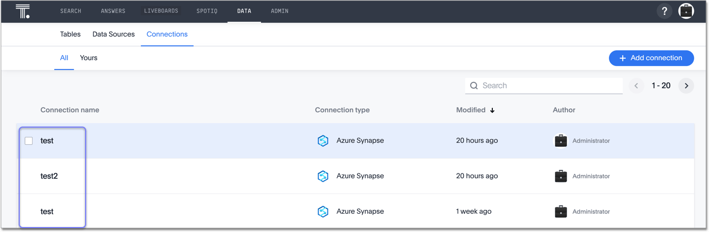 You can now validate connections to discover any changes in metadata after the connection was created. When you validate a connection, ThoughtSpot provides a JSON file containing details on any metadata changes. Once alerted to a metadata change, you can use TML to update the connection.