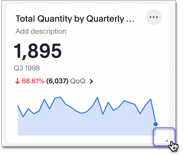 3. Select the size changing icon in the lower-right corner of any visualization, and drag the visualization to the correct size using your mouse. Alternatively, use the 5 predetermined sizes, by selecting the visualization’s More menu more menu icon. The last item in the More menu shows different possible sizes, with the current size selected.