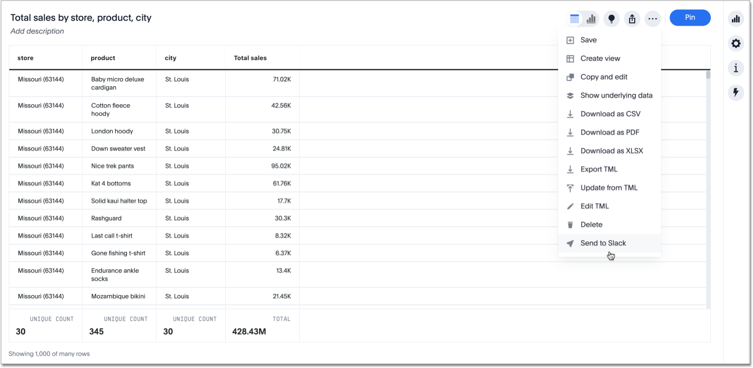 After you receive a notification from Slackbot or email about the request approval, re-initiate the data push workflow by clicking the app action in the ThoughtSpot UI.
