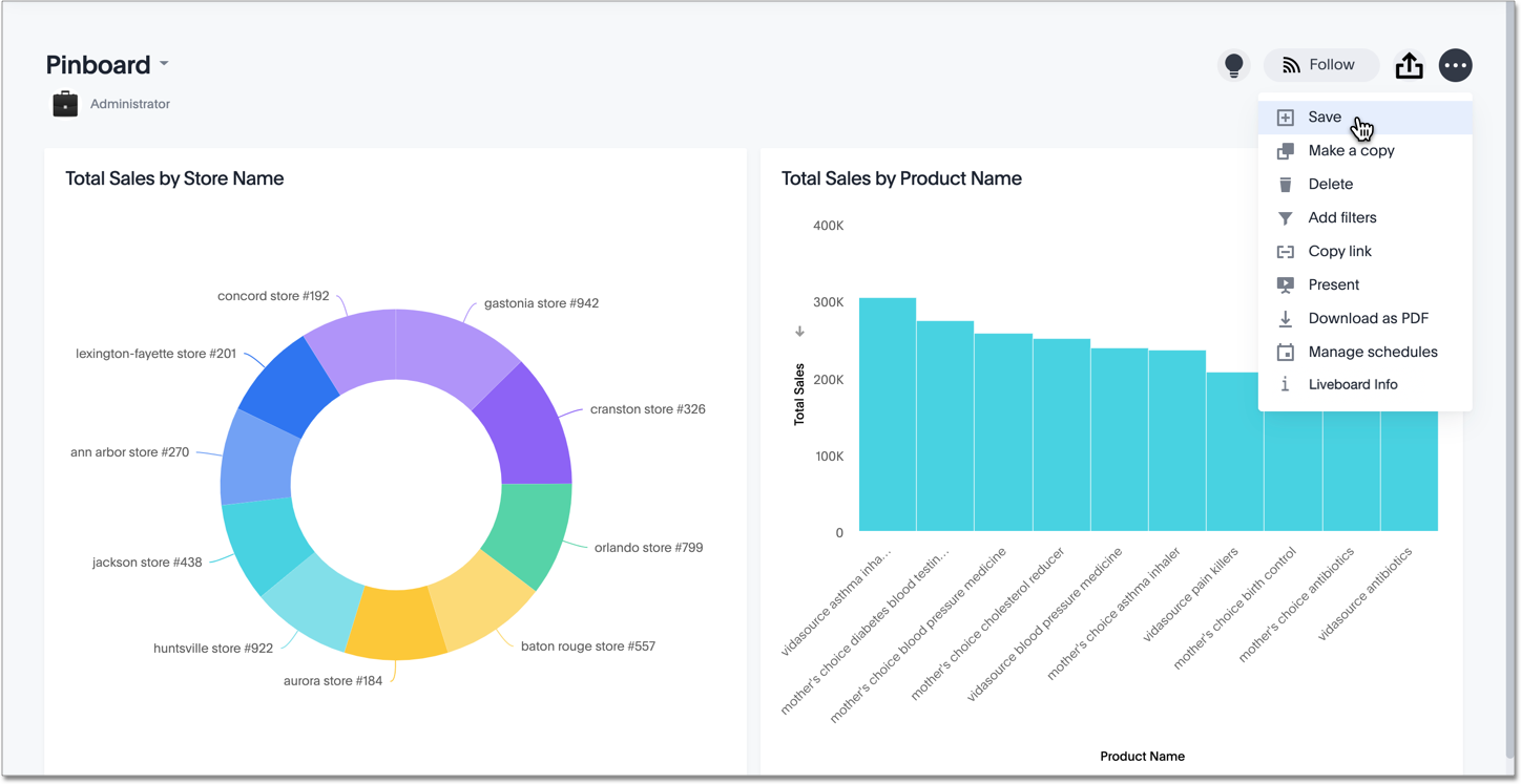 If you edited the Liveboard, save the Liveboard by selecting the Save button in the top menu bar.