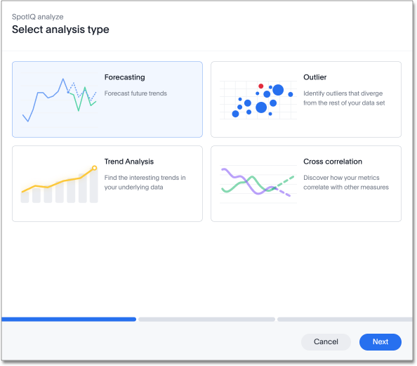 3. The SpotIQ Analyze Select analysis type window appears. Forecasting is selected by default. Click Next.
