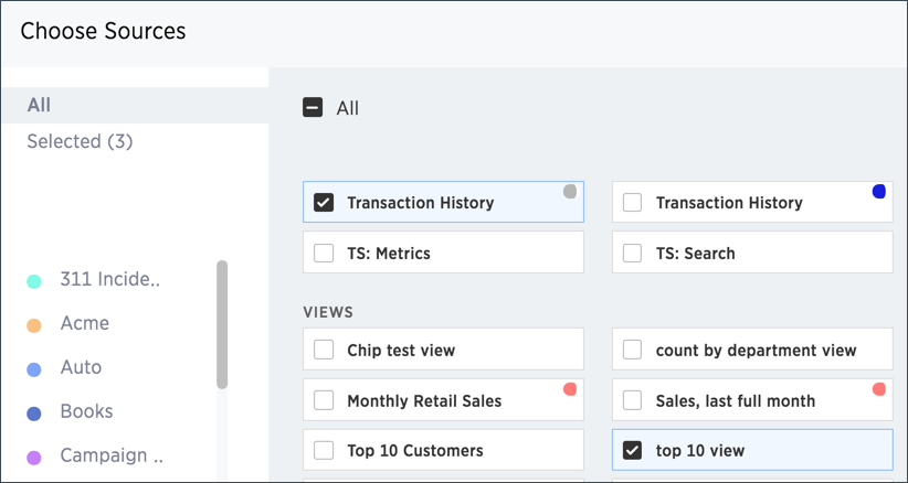 Select the search icon, and select the Choose sources icon in the Data panel. Choose your linked sources.