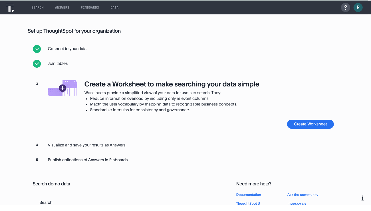To model your use case and optimize ThoughtSpot Search, create a Worksheet.