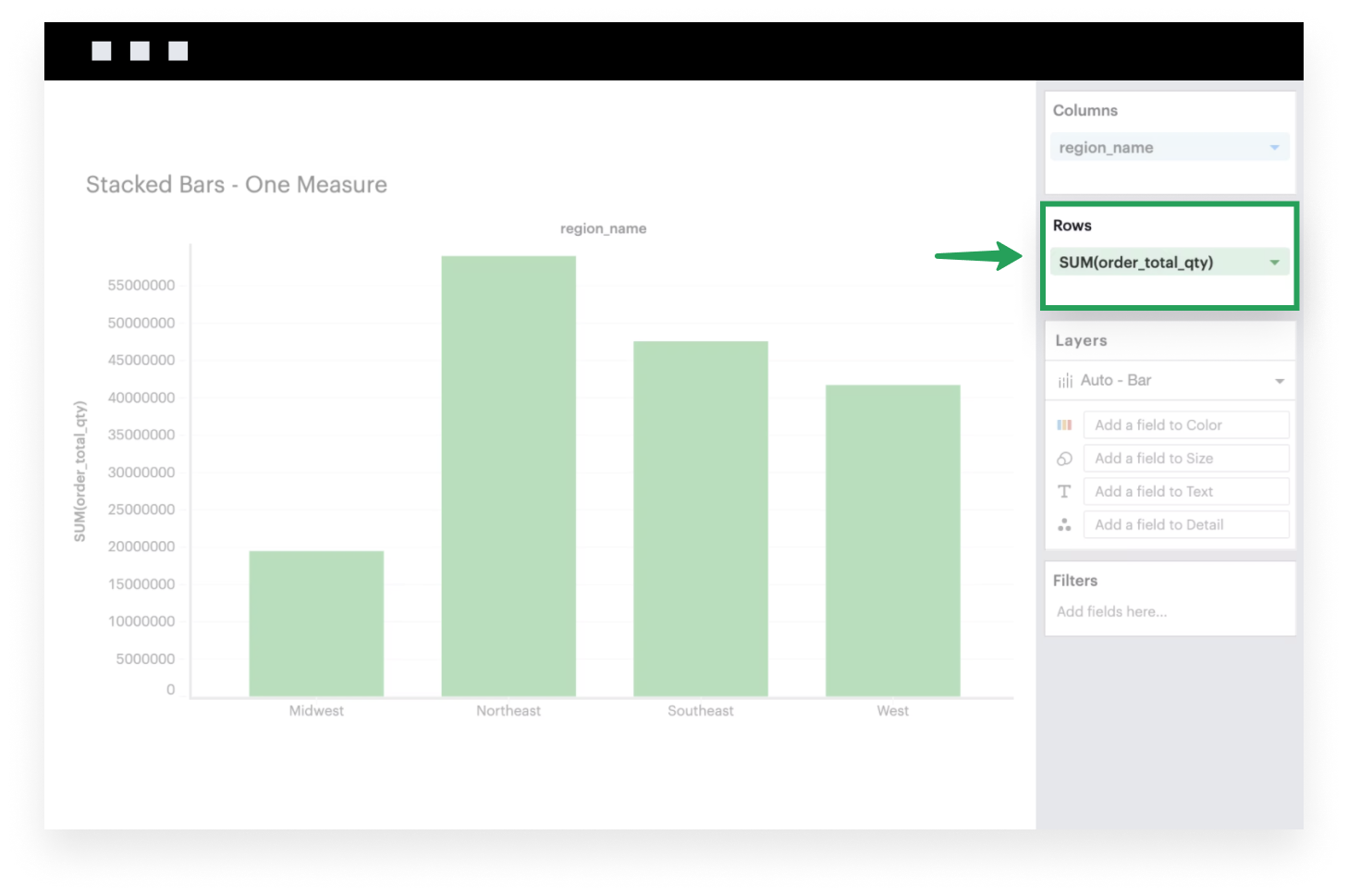 This example will walk you through how to create a simple stacked bar chart with one continuous field that’s broken down by some dimension.