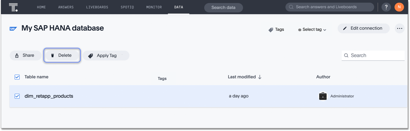 Delete a table from an SAP HANA connection