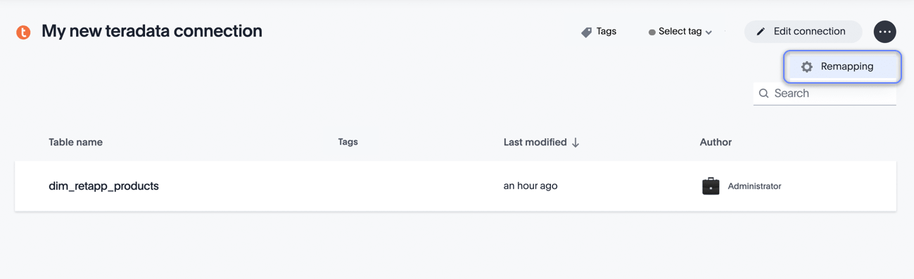 To remove a table from a connection, delete it from the connection details page. For more information, see: Delete a Teradata connection.
