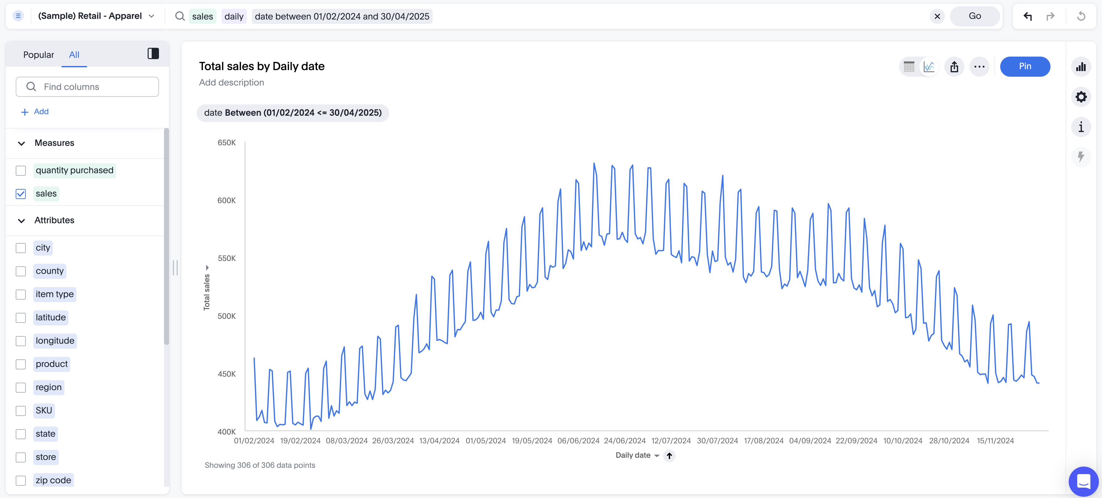 Enter the cumulative_sum formula, providing a measure and one or more attributes.
