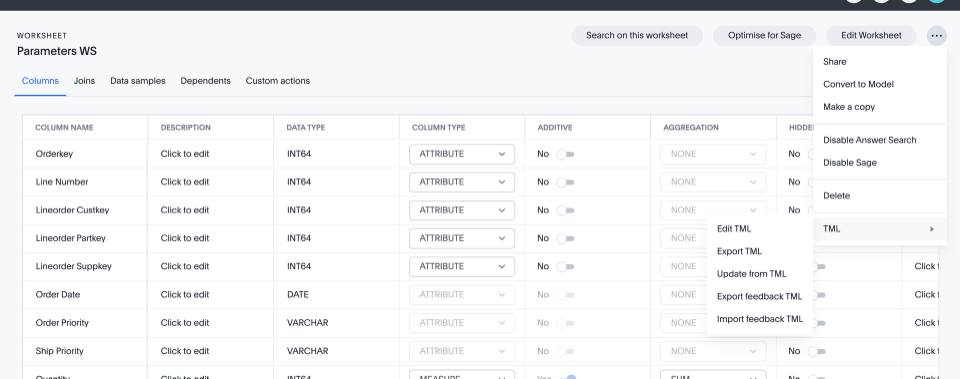 For more information about TML files, see ThoughtSpot Modeling Language.
