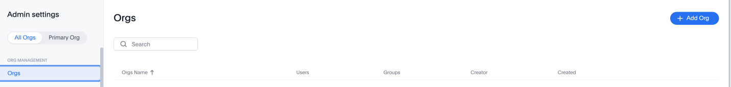 Your Admin Console will look like the Admin Console for Orgs instead of the standard Admin Console. The Orgs Admin Console has all the same functionality as the standard Admin Console. It also has the ability to create Orgs.
