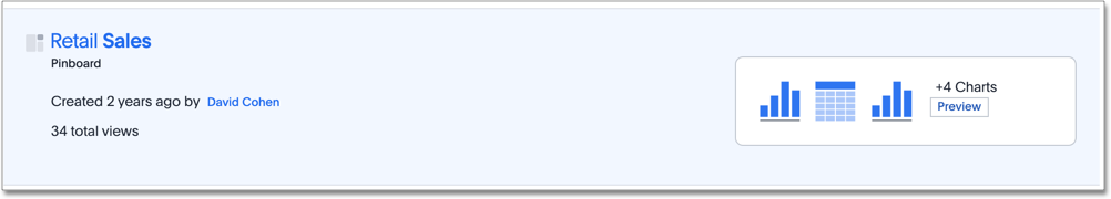 This search returns matches based on existing Answers (charts, KPI charts and tables) and Liveboards: