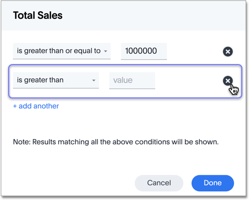 To add another filter condition, select + add another.