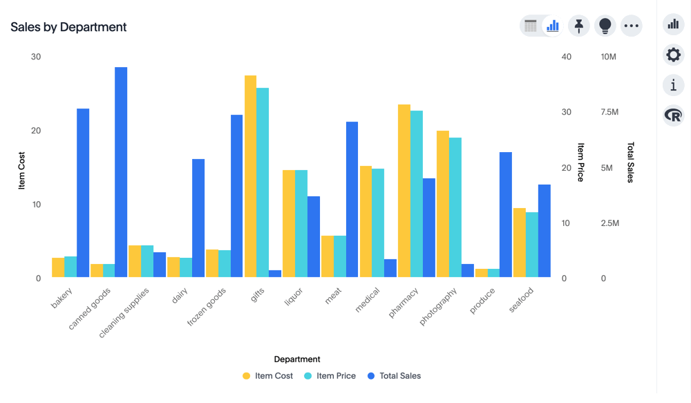You can compare the original chart with the one where the Total Sales axis is on the right, while Item Cost and Item Price both appear on the left.