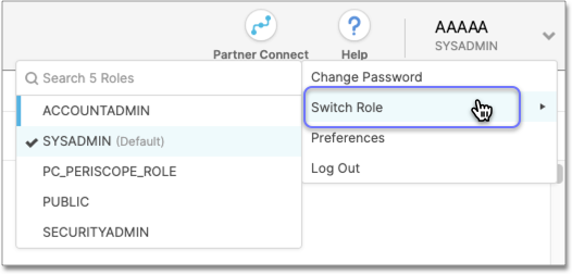 2. If necessary, change your role so you can issue CREATE VIEW DDL statement in the target schema. See CREATE VIEW in Snowflake.