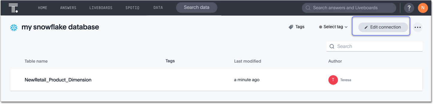 You can edit a Snowflake connection to add tables and columns, as well as manually invalidate refresh tokens from Snowflake for users who have refresh tokens that expired.