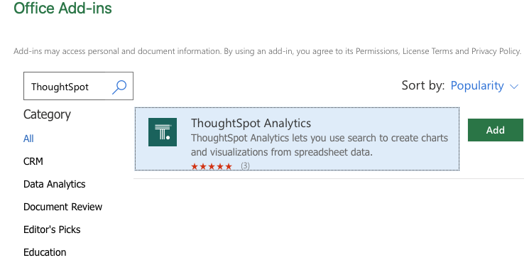 • You can sign up for a ThoughtSpot free trial account to use this add-in.