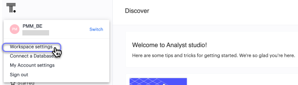 Open the menu beneath your name in the upper left corner and select Workspace Settings.