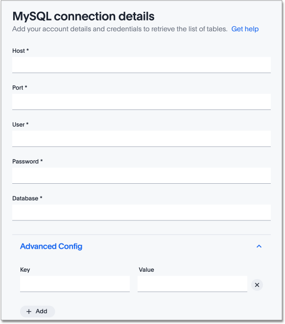 Refer to the MySQL connection reference for more information on each of the specific attributes you must enter for your connection.