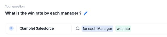 Once you have completed this exercise, Spotter has learned how to compute the win rate. Try a few of the other sample questions to validate that the coaching provided to Spotter is working for the remaining set of queries.