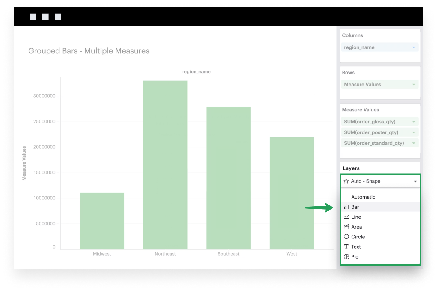 This example will walk you through how to create a simple grouped bar chart when you have multiple continuous fields.