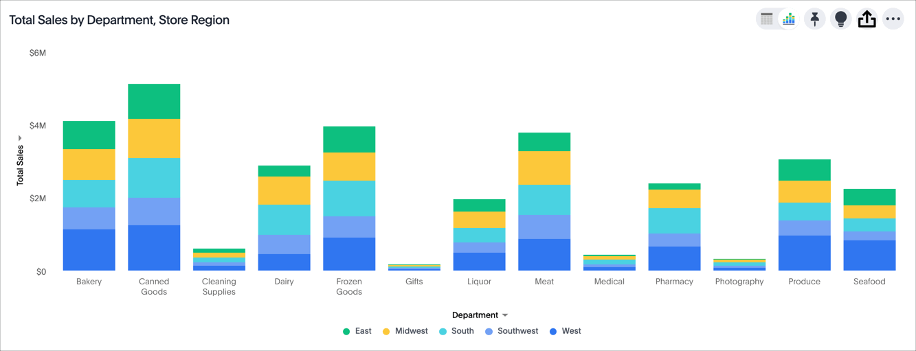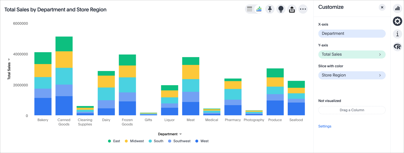 ThoughtSpot uses a specific logic to determine the colors in your charts. To learn more, expand the following Chart color logic section.