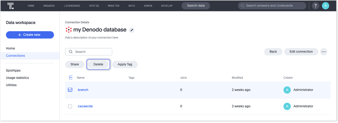 When you attempt to remove a table from a connection, ThoughtSpot checks for dependencies and shows the list of dependent objects. You have two options:
