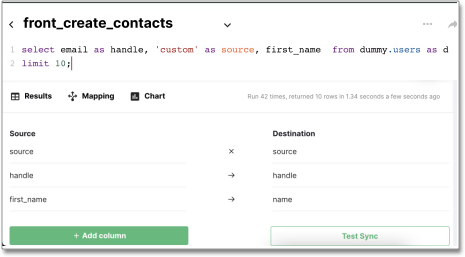 If you’re doing an operation on Contact, be sure to map the ‘handle’ and ‘source’ to perform the operation. Source of the handle can be email, phone, twitter, facebook, intercom, front_chat, or custom.