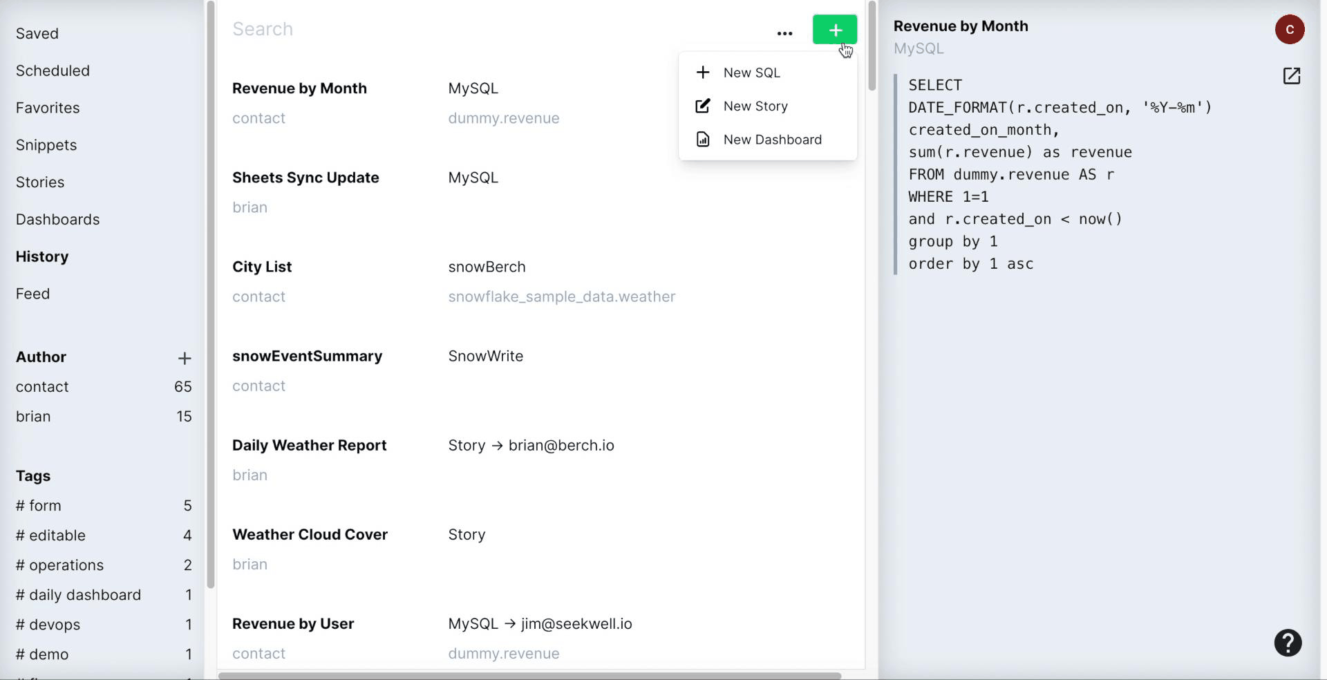 You can query live Salesforce data with SeekWell. We use SOQL, the Salesforce query language, to execute the statements.
